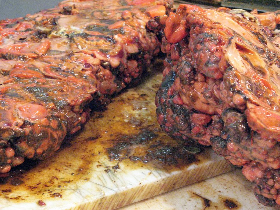 Mực biển khổng lồ ở Santiago Chile:Những con mực biển khổng lồ có kích thước bằng quả bóng rổđược tìm thấy ở ngoài khơi Chile. Chúng được mổ bằng dao có răng cưa để khi cắt lộ ra những thớ thịt ướt nhão bên trong. Món ăn này sẽ trở nên thơm ngon, mặn mà nếu sử dụng thêm chanh tươi.