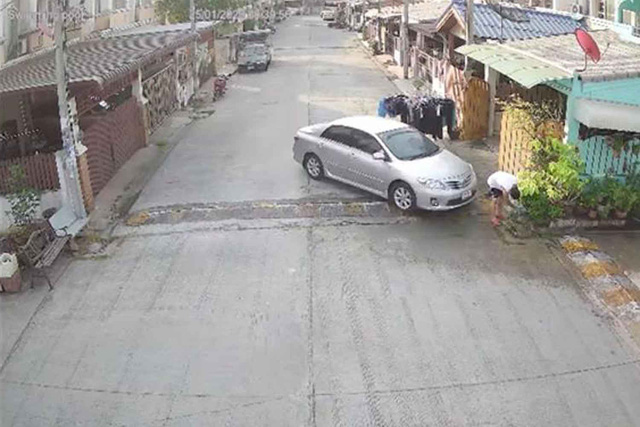 Ông Paiboon lái xe hướng đến chỗ dây phơi quần áo được kéo dài ra ngoài đường và suýt nữa thì tông vào dây phơi. Sau đó, ông lái xe đón 2 bé trai rồi đột nhiên tăng tốc và tông vào ông Suphan. Hung thủ liền bỏ chạy với 2 bé vẫn ở trong xe.