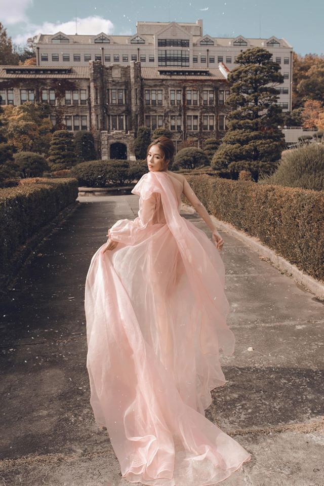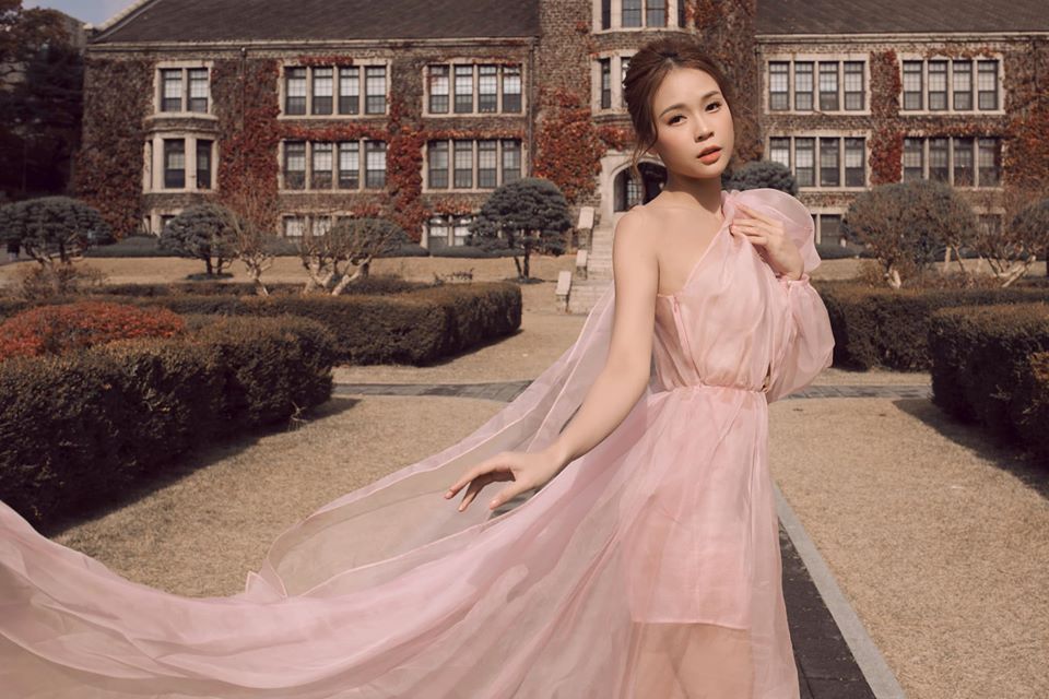Mới đây, Sam tiếp tục ghi điểm trong mắt người hâm mộ lựa chọn bộ váy chất liệu xuyên thấu mong manh như sương.
