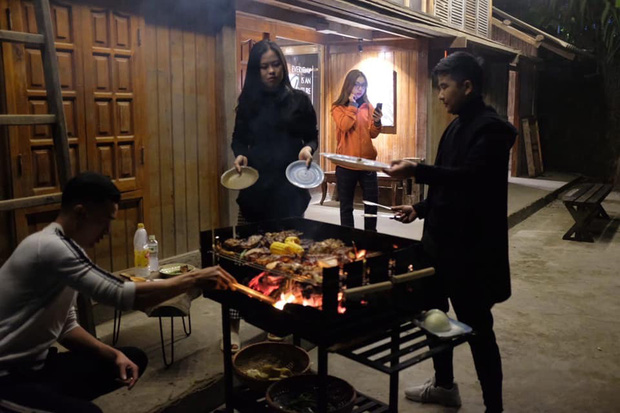 Bức ảnh chụp chung hiếm hoi của cả hai ở SaPa, Lu đứng xa xa còn anh chàng đang nướng thịt mặc áo đen đấy.