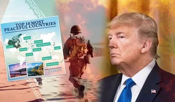 Không có gì ngạc nhiên khi cả Iran và Mỹ đều được xem là kém yên bình. Mỹ có số điểm yên bình là 128 trên tổng số 163 điểm, trong khi đó, Iran xếp hạng yên bình thấp hơn, với số điểm 139 trên tổng số 163 điểm.
