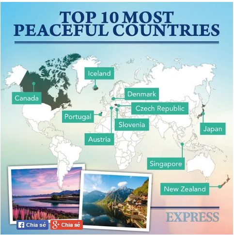 Đây là những địa điểm an toàn nhất thế giới theo chỉ số hòa bình toàn cầu (GPI) ( chỉ số được sử dụng để xác định thứ hạng yên bình của các quốc gia).