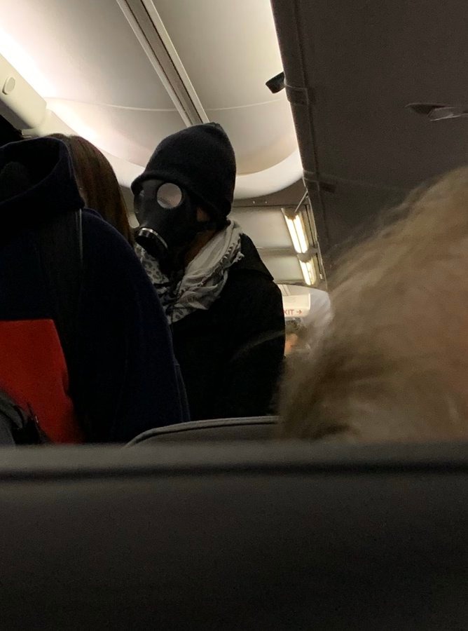 Hành khách mang mặt nạ phòng độc lên máy bay khiến hành khách và tiếp viên "tá hỏa" (Ảnh: Joseph Say)