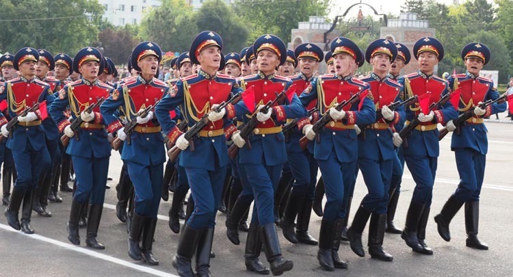 Lính Nga cũng tham gia diễu hành trong ngày Quốc khánh của Transnistria. Ảnh: BBC.
