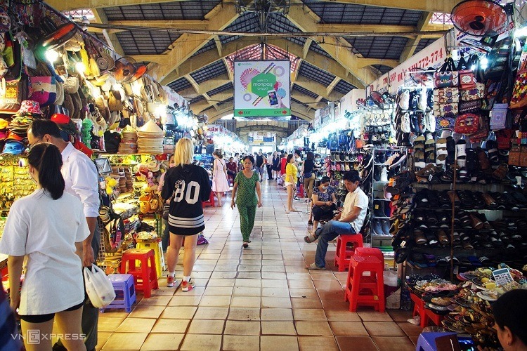 Chợ Bến Thành (TP HCM) vốn là điểm hút du khách trong và ngoài nước đến tham quan, mua sắm, ăn uống nay không mấy đông đúc. Ảnh: Tâm Linh.