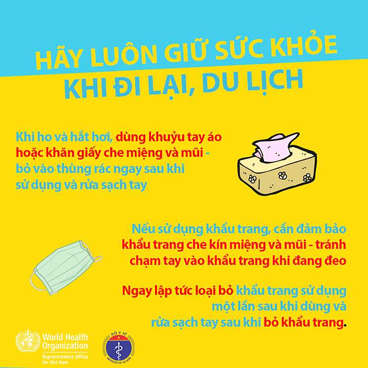 Với các du khách đang đi tour ở Hàn Quốc, công ty khuyến cáo nên thực hiện nghiêm các chỉ dẫn phòng chống dịch nCoV của Bộ Y Tế. Cụ thể như đeo khẩu trang đúng cách, đặc biệt khi ở nơi đông người hoặc tiếp xúc trực tiếp với người nghi ngờ nhiễm bệnh. Liên lạc ngay cho hướng dẫn viên, công ty tour và cơ quan chức năng nước sở tại, khi phát hiện những dấu hiệu bất thường về sức khỏe. Du khách nên tránh tiếp xúc với động vật hoang dã, vật nuôi không rõ nguồn gốc và không ăn các thực phẩm sống.