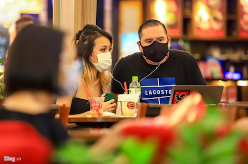 Đáng chú ý, kể cả khi ngồi trong nhà hàng, quán cà phê, nhiều thực khách vẫn đeo khẩu trang. Những cuộc chuyện trò rôm rả trước đây trở nên thưa thớt dần.
