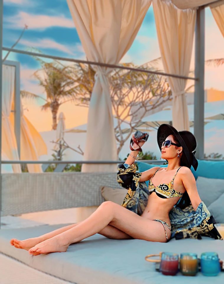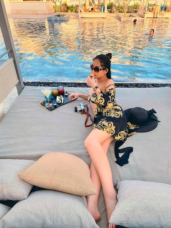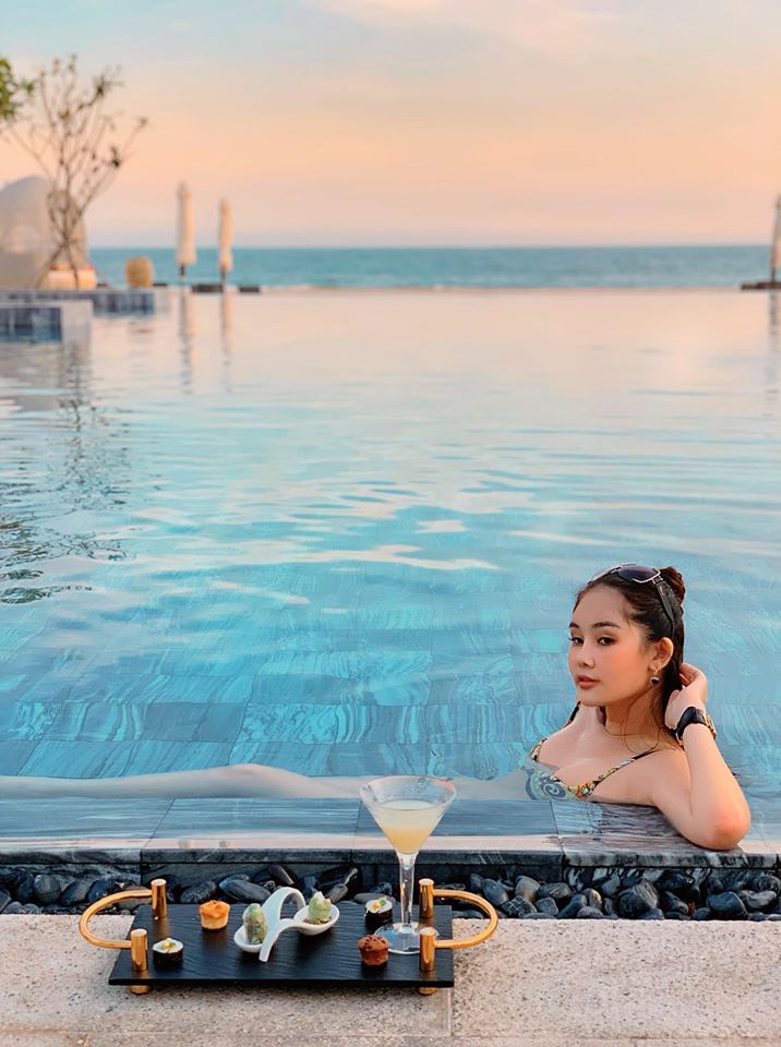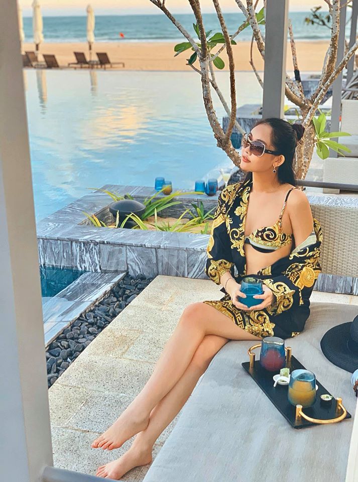 Đặc điểm dáng vóc này là "vũ khí lợi hại" giúp Lê Âu Ngân luôn xuất hiện nóng bỏng với trang phục áo tắm. Nếu để ý trên trang cá nhân của cô nàng, người hâm mộ sẽ thấy Ngân Anh thường xuyên đăng ảnh đồ bơi, shoot hình nào cũng ấn tượng và cô không mặc lại đồ. Mới đây, Lê Âu Ngân Anh mặc bikini khoe dáng đồng hồ cát trong bể bơi khiến nhiều người phải hút mắt.