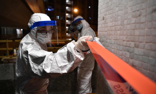 Cảnh sát phong tỏa một khu dân cư ở Hong Kong. Ảnh: AFP/Getty.