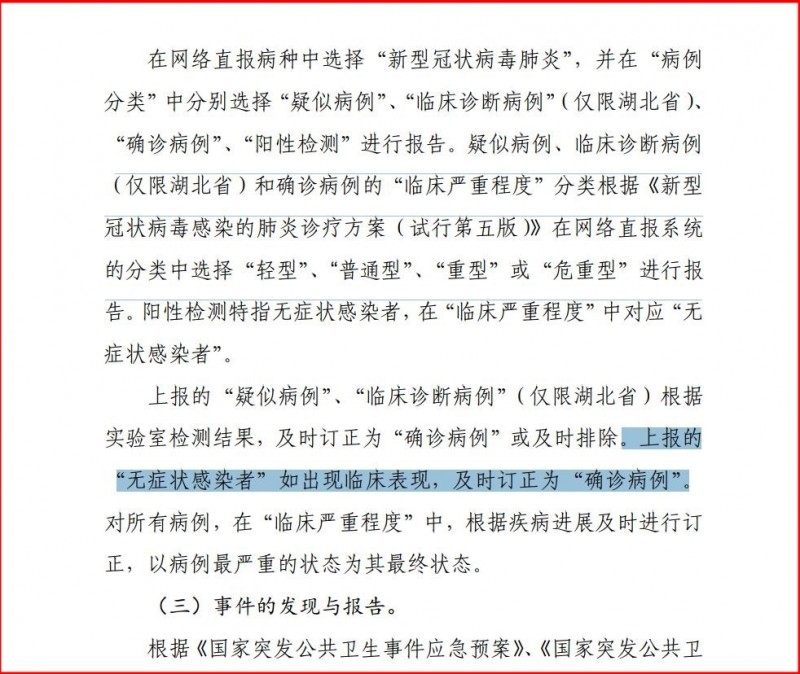 Ngoài ra, điều đáng chú ý là phiên bản mới nhất của “Chương trình phòng ngừa và kiểm soát viêm phổi do nCoV” mà ĐCSTQ công bố có quy định rằng đối với những trường hợp cảm nhiễm mà chưa thấy có triệu trứng thì yêu cầu các cơ sở y tế tỉnh chờ đến khi phát bệnh mới được xếp vào danh sách người nhiễm bệnh.