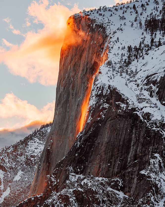 Để nhìn thấy thác lửa Yosemite, thiên nhiên phải tạo điều kiện thuận lợi và điều này không phải năm nào cũng xảy ra. Chỉ khi có tuyết ở Yosemite, nhiệt độ đủ cao để tuyết tan và tạo ra thác nước. Trước đây, khi California trải qua hạn hán, các thác nước không đủ lượng nước để tạo nên cảnh quan rực cháy kia.