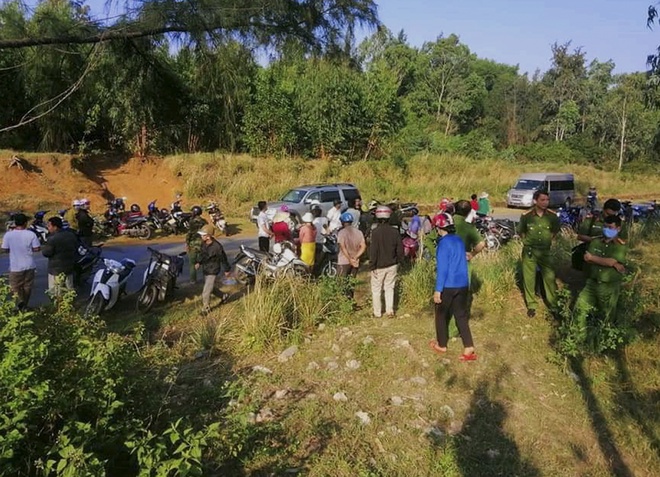Cảnh sát khám nghiệm hiện trường vụ án mạng ở xã Bình Phú, huyện Bình Sơn. Ảnh: Facebook Tin nóng Bình Sơn.