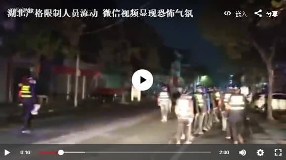 Nhật báo Đô thị Nam Phương của tỉnh Quảng Đông, Trung Quốc đưa tin, chiều ngày 16/2, chính quyền tỉnh Hồ Bắc đã ban hành ba chỉ thị nghiêm ngặt trong vòng một tiếng rưỡi, yêu cầu cộng đồng dân cư trong toàn bộ các khu vực từ thành thị đến nông thôn phải nghiêm túc thực thi việc quản lý khép kín 24/24 giờ, đảm bảo “không bỏ sót dù chỉ một hộ, không để lạc dù chỉ một người, không ngừng lại dù chỉ một ngày”.