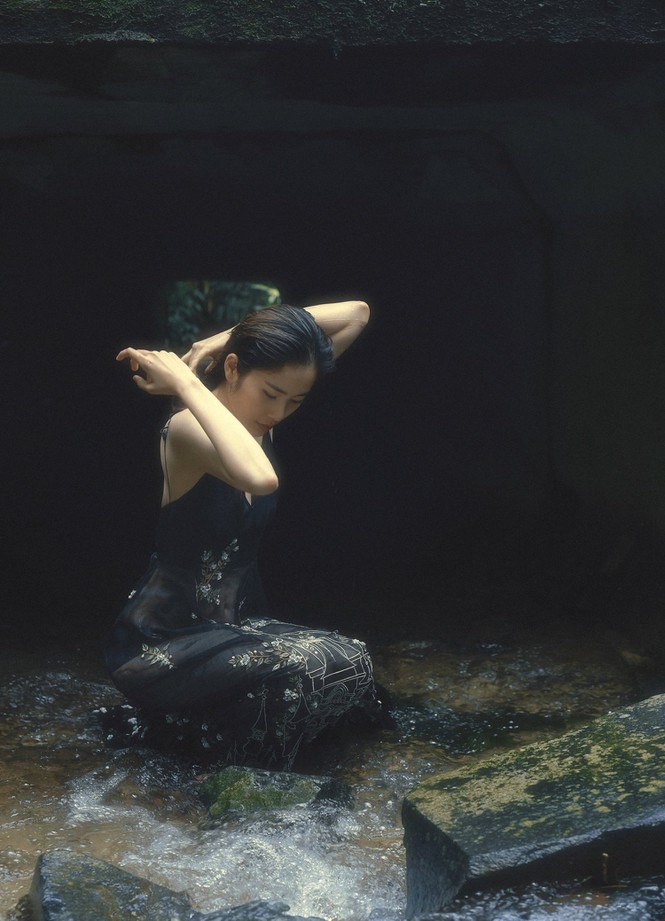 Linh Miu gây tranh cãi khi mặc gợi cảm tắm suối.