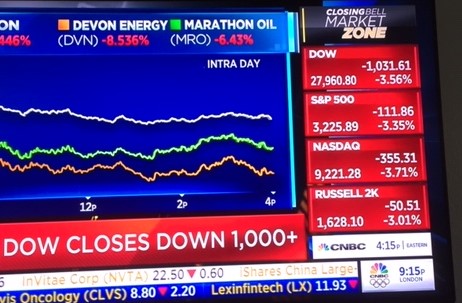 Dow Jones mất tới 979 điểm ngay khi khi mở cửa, tương đương 3,4%. S&P 500 giảm 3,2% trong khi Nasdaq Composite giao dịch thấp hơn 4%. Theo đó, Dow Jones chứng kiến mức giảm trong 1 ngày mạnh nhất kể từ tháng 2/2018, khi rớt hơn 1.000 điểm.
