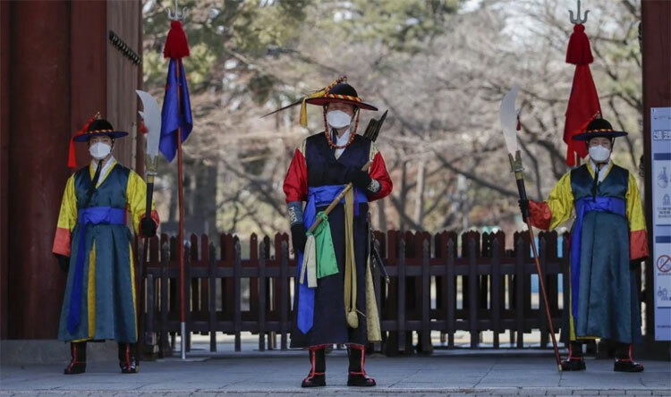 Nhân viên tại một điểm du lịch ở thủ đô Seoul, Hàn Quốc đeo khẩu trang trong những ngày nước này bùng phát dịch Covid-19. Ảnh: AP.