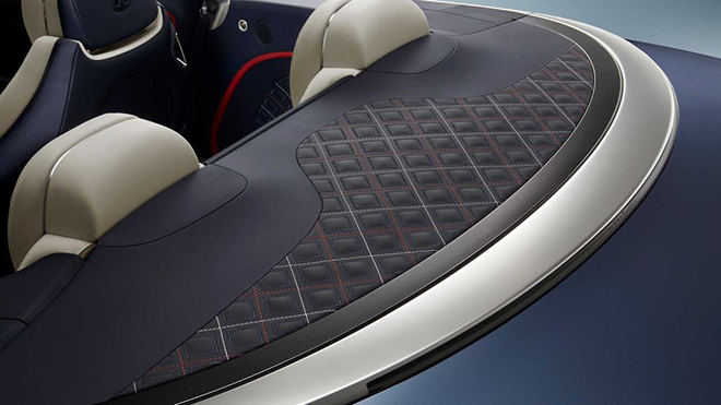 Về nội thất, các họa tiết hình kim cương được làm thủ công tỉ mỉ trên bề mặt da ghế, tấm ngưỡng cửa và nắp đậy phần mui gập, tương tự phong cách của tấm lưới tản nhiệt. Các đường khâu tương phản với toàn bộ 400.000 mũi chỉ trên để hoàn thiện và trang hoàng cho khoang nội thất. Trong đó mỗi họa tiết mất 712 mũi khâu riêng lẻ, công đoạn này mất tới 18 tháng làm việc của những người thợ lành nghề.