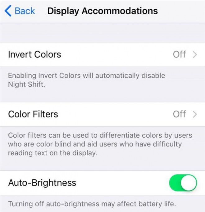 Hoặc bạn có thể cài đặt tự động đổi chế độ sáng thông qua các bước: Cài đặt---> Cài đặt chung (General)--> Trợ năng (Accessibility)--> Thích nghi màn hình (Display Accommodations)--> bật Tự động Độ sáng(Auto-Brightness).