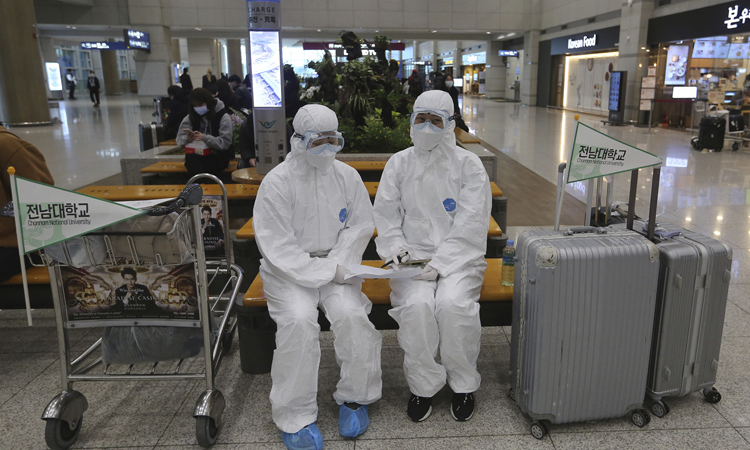Nhân viên y tế mặc đồ bảo hộ tại sân bay quốc tế Incheon, Hàn Quốc hôm 25/2. Ảnh: AP.
