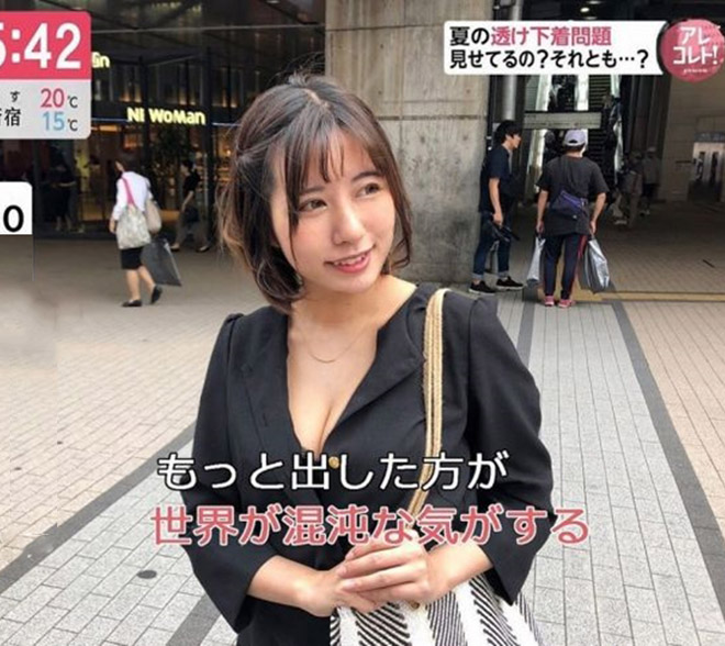 Theo news.ltn, đài truyền hình Fuji TV từng có chương trình khá thú vị là phỏng vấn ngẫu hứng người đi đường về trang phục phóng khoáng mùa hè của phụ nữ và họ nghĩ sao về việc phụ nữ mặc áo nhưng thấp thoáng lộ đồ lót. Nhiều người tỏ ra e ngại khi trả lời. Nhất là cánh đàn ông, có người nói xấu hổ khi thấy phụ nữ để lộ áo lót. Họ cũng không dám nhìn vì sợ bị nghĩ là kẻ biến thái.