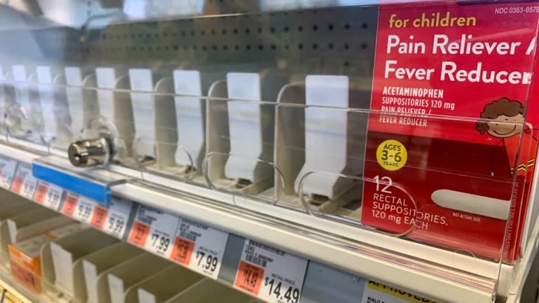 Kệ thuốc hạ sốt trẻ em ở Duane Reade cũng trống rỗng. Ảnh: Nikkei