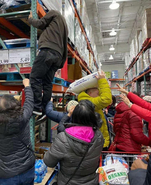 Cảnh tượng hỗn loạn cũng diễn ra tại một siêu thị ở ngoại ô thành phố Seattle, bang Washington. Một người cho hay có tới 1.400 khách chờ sẵn khi siêu thị mở cửa và họ tranh nhau mua nước khoáng, bánh mỳ, gạo. Bang Washington là nơi ghi nhận ca tử vong đầu tiên vì nCoV tại Mỹ hôm 29/2. Đến nay cả 6 ca tử vong tại Mỹ đều ở bang Washington.