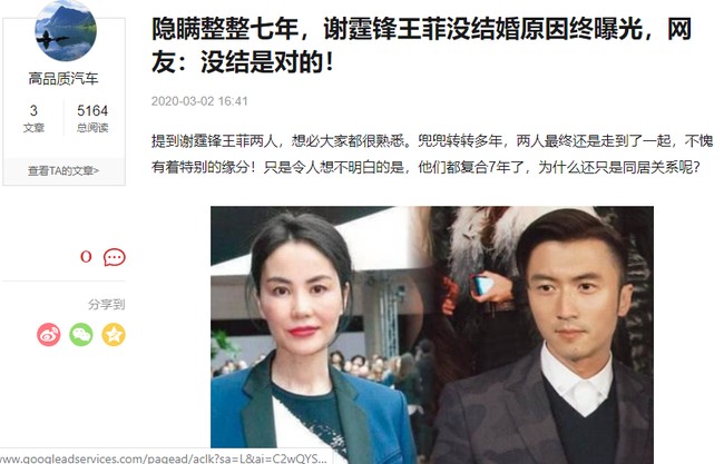 Tuy nhiên, một số cư dân mạng cho rằng, bản thân Tạ Đình Phong chỉ muốn yêu chứ chẳng muốn chịu trách nhiệm, nên mới không chịu kết hôn cùng Vương Phi. Trước đó, một nguồn tin thân cận cho biết, nguyên nhân khiến Vương Phi và Tạ Đình Phong không thể kết hôn là do con gái Lý Yên.