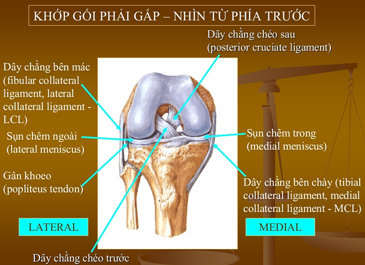 Để hiểu chấn thương ACL, cần biết cấu tạo đầu gối. Đầu gối là một khớp nối xương đùi, xương chày và xương mác bằng các dây chằng. Khớp gối là khớp lớn nhất cơ thể, chịu toàn bộ tải trọng của người. Nó cũng linh hoạt bậc nhất khi có thể xoay theo nhiều hướng, nhưng cũng phức tạp nhất. Dây chằng chỉ bị tổn hại nhỏ, cũng ảnh hưởng lớn tới hoạt động của khớp gối.Có bốn loại dây chằng. Dây chằng chéo trước và sau nằm trong khớp gối, nối xương đùi và xương chày. Dây chằng bên mác nối xương đùi với xương mác, còn dây chằng bên chày nối xương đùi với xương chày. Bốn dây chằng này giúp khớp gối linh hoạt.