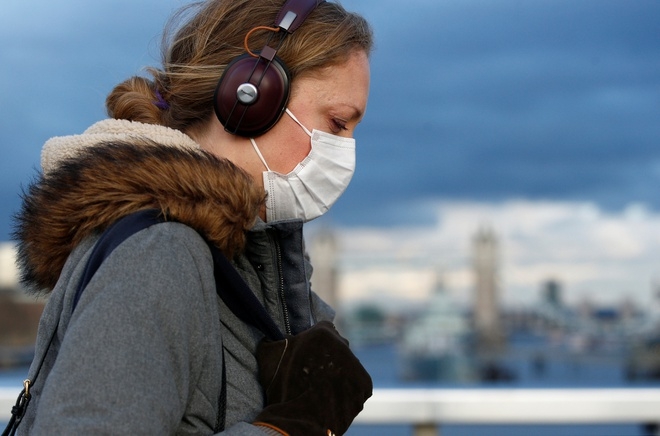 Một người đeo khẩu trang ở London, Anh, hôm 4/3. Ảnh: Reuters.