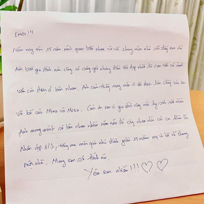Lưu Hương Giang khoe được Hồ Hoài Anh viết thư tay mùi mẫn nhân ngày phụ nữ. Sau nhiều sóng gió cặp đôi vẫn hạnh phúc bên nhau.