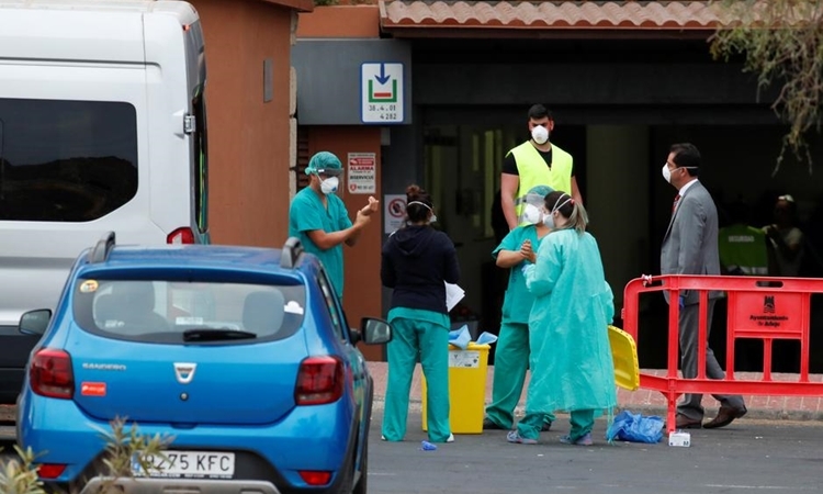 Nhân viên y tế chuẩn bị kiểm tra người dân tại một địa điểm bị cách ly ở Adeje, Tenerife, Tây Ban Nha hôm 28/2. Ảnh: Reuters.