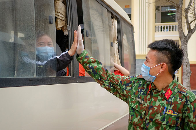 "Thượng lộ bình an nhé", "Phải mạnh khỏe nhé", nhiều lời chúc được gửi gắm khi xe rời trung tâm cách ly.