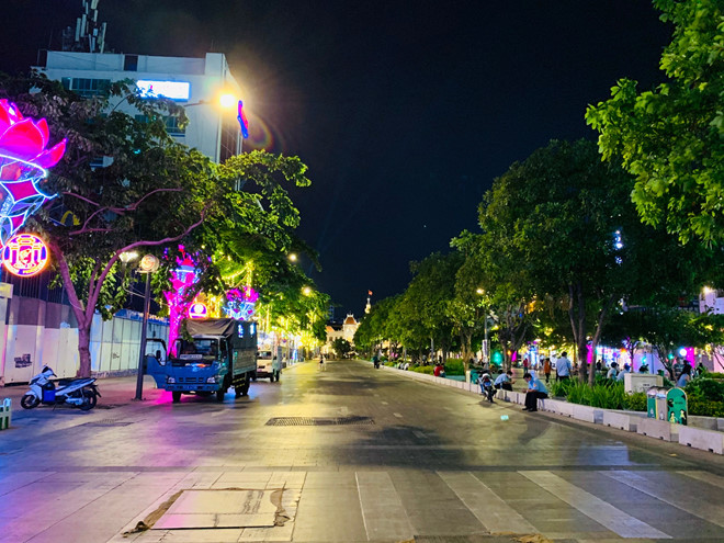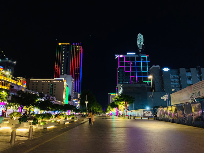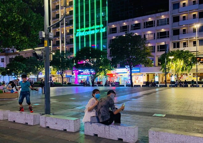 Rẽ vào đường đi bộ Nguyễn Huệ, không khỏi kinh ngạc khi cảnh tưởng vắng vẻ lạ thường. Không ai có thể tưởng tượng đây là con đường đi bộ đông đúc, nhộn nhịp nhất của TP.HCM