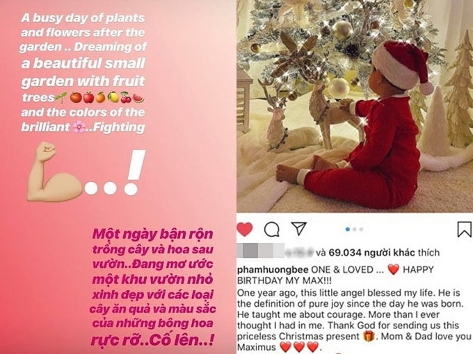 Hiện Phạm Hương thoải mái chia sẻ hình ảnh con trai thông qua một tài khoản instagram của bé. Theo hoa hậu, tên của con trai - Maximus - mang ý nghĩa chiến binh, cô mong con trai luôn mạnh mẽ trong cuộc sống.