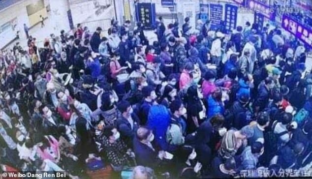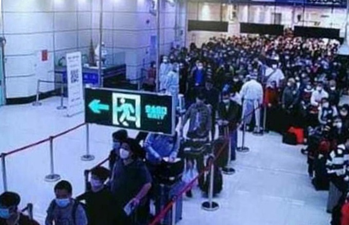 Những bức ảnh lan truyền trên mạng xã hội cho thấy rất đông người xếp hàng chờ làm thủ tục nhập cảnh vào Trung Quốc đại lục sau khi từ tâm dịch châu Âu trở về.