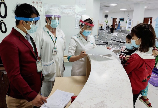 Bác sĩ Bệnh viện Nhi đồng Thành phố, Chợ Rẫy đã rất sáng tạo khi tự chế nón kính bảo hộ "blouse-made" với tấm chắn ngăn giọt bắn. Chi phí cực rẻ chỉ 4.000 đồng.