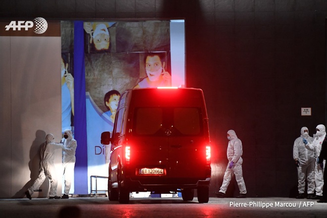 Sân băng Palacio de Hielo bên trong trung tâm mua sắm ở Madrid được chuyển đổi thành nhà xác để đối phó với sự gia tăng số người chết ở Tây Ban Nha. Ảnh: AFP.