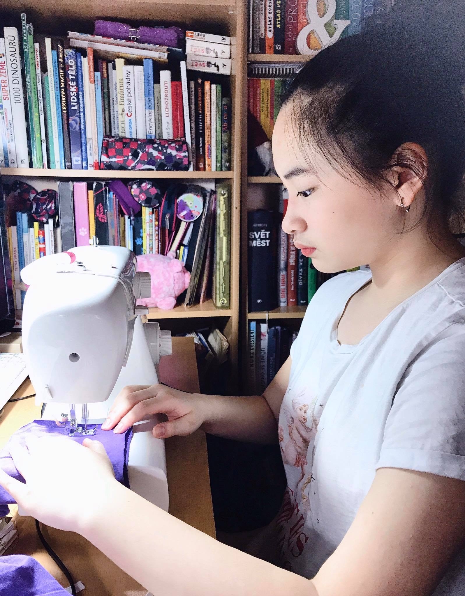 Con gái lớn của chị Hà may khẩu trang tặng hàng xóm, bạn bè, bệnh viện Séc.