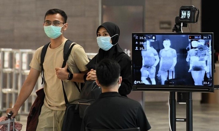 Điểm kiểm tra thân nhiệt tại sân bay quốc tế Changi, Singapore, ngày 27/2. Ảnh: AFP.