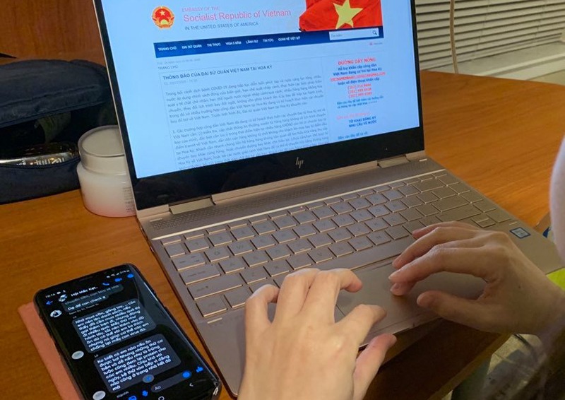 Không ngủ 24 giờ qua, Nguyễn Quỳnh, sinh viên năm ba của một trường đại học tại bang Indiana, liên tục cầm điện thoại kiểm tra toàn bộ bài đăng, đọc hết tin nhắn ở các nhóm do em lập ra trên Facebook. Những nhóm này gồm du học sinh đã đặt vé về Việt Nam nhưng bị hủy chuyến, mắc kẹt ở một thành phố xa lạ, phụ huynh của các bạn bị kẹt, phụ huynh có con du học Mỹ, người Việt ở Mỹ và cả người Việt đi du lịch nhưng chưa thể trở về do ảnh hưởng của Covid-19.