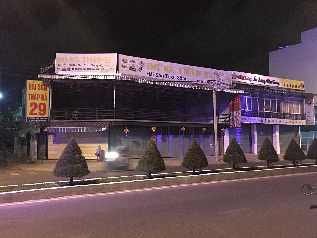 Tại Khánh Hòa, nhiều nhà hàng đã đóng cửa từ lâu. Ảnh chụp một nhà hàng đóng cửa trên đường Phạm Văn Đồng lúc 20 giờ ngày 25/3. Ảnh: Nguyễn Nam.