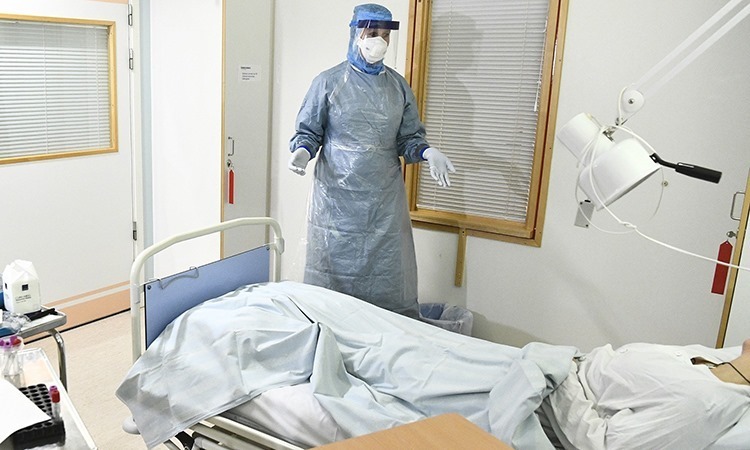 Nhân viên y tế trong phòng điều trị bệnh nhân nhiễm Covid-19 tại Bệnh viện Đại học Karolinska, Stockholm. Ảnh: Claudio Bresciani.