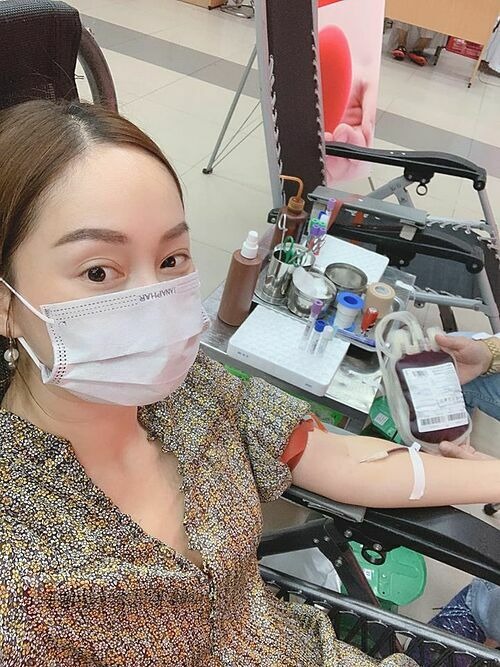 Tình hình dịch Covid-19 diễn biến phức tạp khiến nhiều người ngại ra ngoài, hạn chế tham gia các hoạt động xã hội. Vì vậy số người tình nguyện hiến máu giảm đáng kể, lượng máu dự trữ tại các bệnh viện cạn dần. Nữ diễn viên kêu gọi cộng đồng: "Mọi người ngại ra đường nhưng nếu ra đường để đi hiến máu thì đừng ngại nhé. Rất nhiều người đang trông chờ được cứu sống nhờ dòng máu chúng ta hiến tặng".
