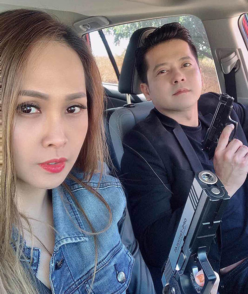 Minh Thư đóng phim ngắn cùng diễn viên Hoàng Anh ở Mỹ.