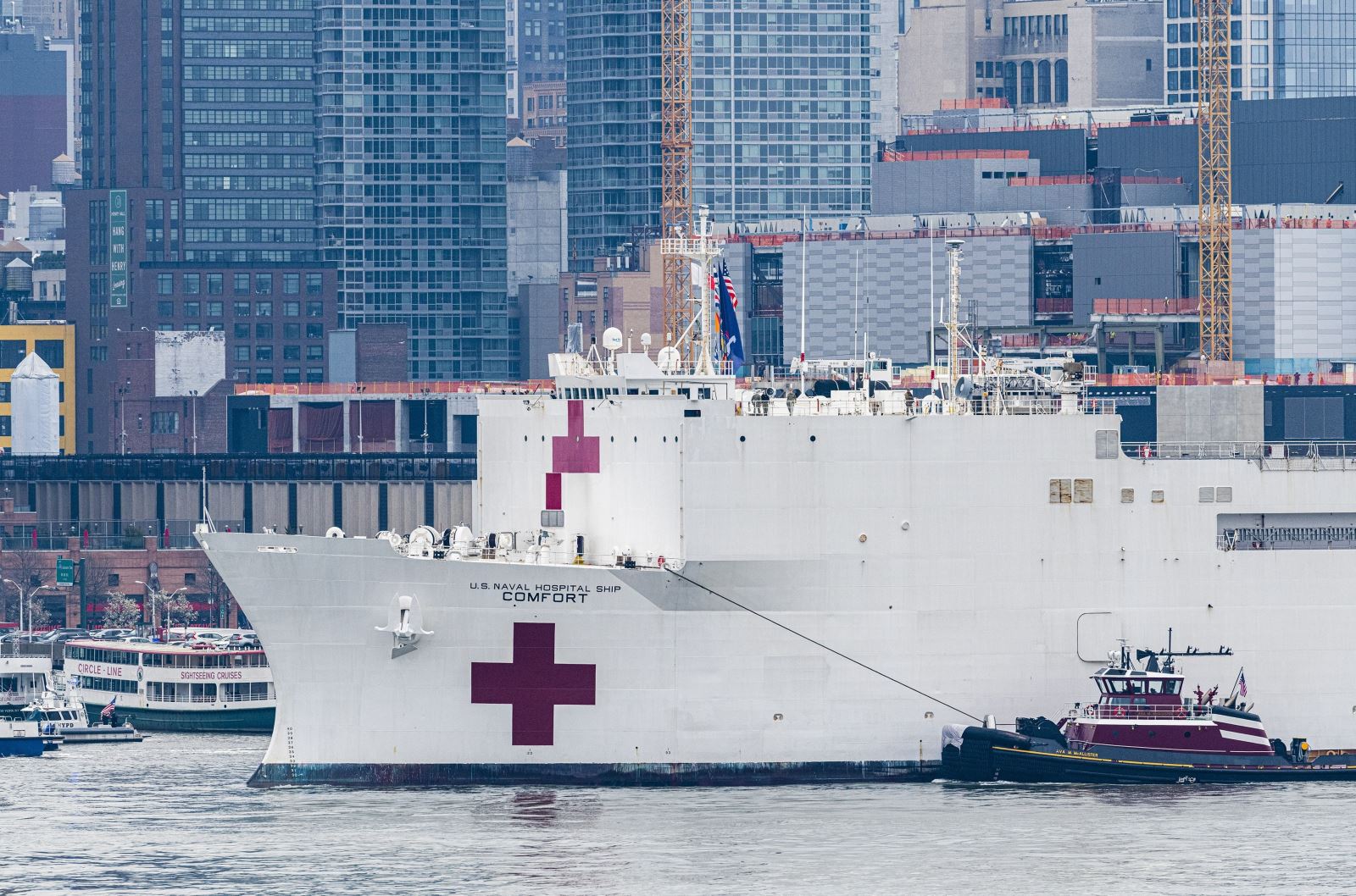 Tàu bệnh viện USNS Comfort cập cảng Manhattan, New York, Mỹ ngày 30/3/2020. Ảnh: THX/TTXVN