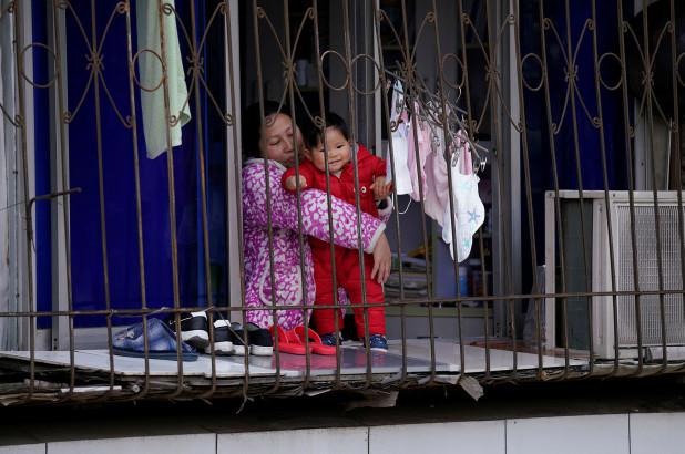 Một em bé cùng mẹ tại một ngôi nhà ở Vũ Hán, tỉnh Hồ Bắc, Trung Quốc. Ảnh: Reuters