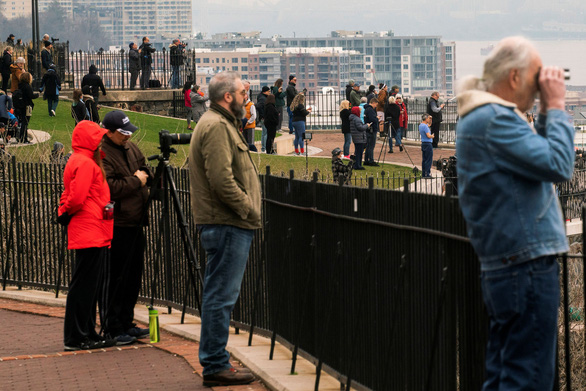 Người dân New York tập trung xem tàu Comfort cập cảng - Ảnh: REUTERS