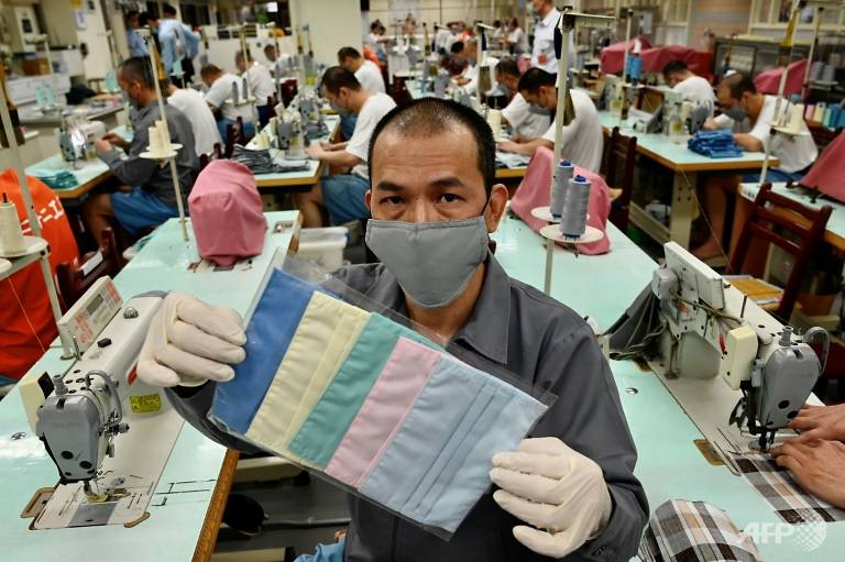 Tù nhân Đài Loan tham gia may khẩu trang chống Covid-19 (ảnh: Reuters)