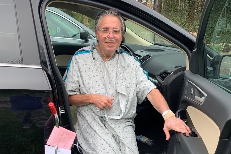 Mike Weinhaus rời bệnh viện sau khi được điều trị Covid-19. Ảnh: WSJ.