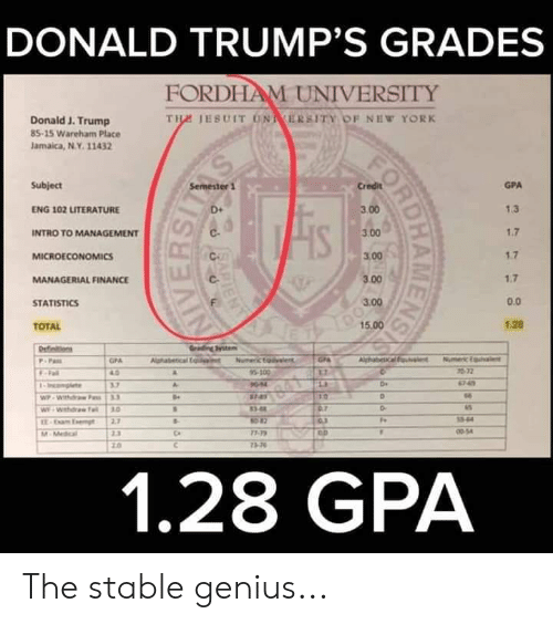 --> Cảm ơn phokhuya và SlyGuy thật nhiều, vì nhờ đó mà cả forum được hiểu thêm về chữ „Cuồng Trump“! Cũng là dạng „Khai Dân Trí“ như ai ! Thế GPA của 2 bạn được quyền (!) cao hơn 1,28 của ngài Trump hay 0 nhỉ ???